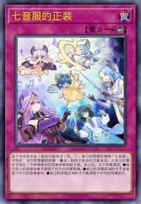 这个卡名的卡在1回合只能发动1张。 ①:自己的灵摆区域有「七音服」卡存在,对方把怪兽的效果·魔法·陷阱卡发动时才能发动。从自己的额外卡组让1只表侧表示的灵摆怪兽回到卡组。那之后,以下效果适用。 ●自己场上的灵摆怪兽不受那个对方的效果影响。 ●自己的灵摆区域的卡不会被那个对方的效果破坏。 ●自己的灵摆区域的卡不能用那个对方的效果除外。